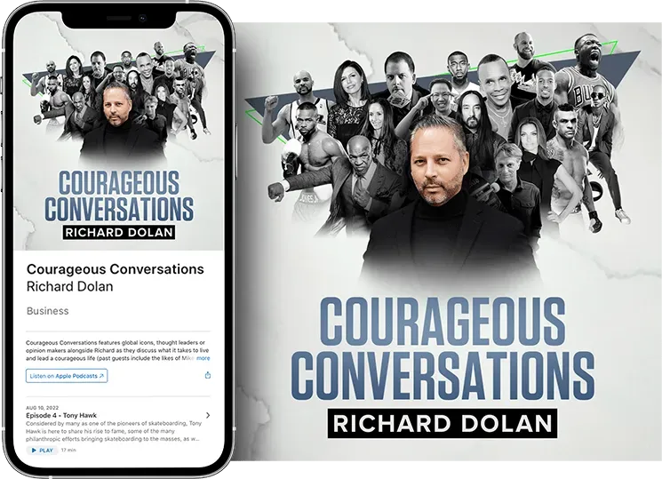 Richard Dolan's Courageous Conversations podcast features global icons, thought leaders or opinion makers alongside Richard as they discuss what it takes to live and lead a courageous life